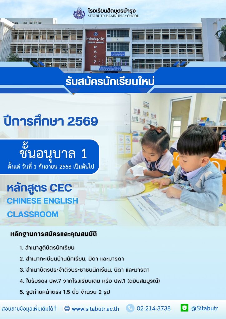 โรงเรียนสีตบุตรบำรุง เปิดรับสมัครนักเรียน ระดับชั้นอนุบาล 1 ประจำปีการศึกษา 2569 ห้องเรียน CEC (Chinese English Classroom) หลักสูตรการเรียนรู้ระดับปฐมวัย